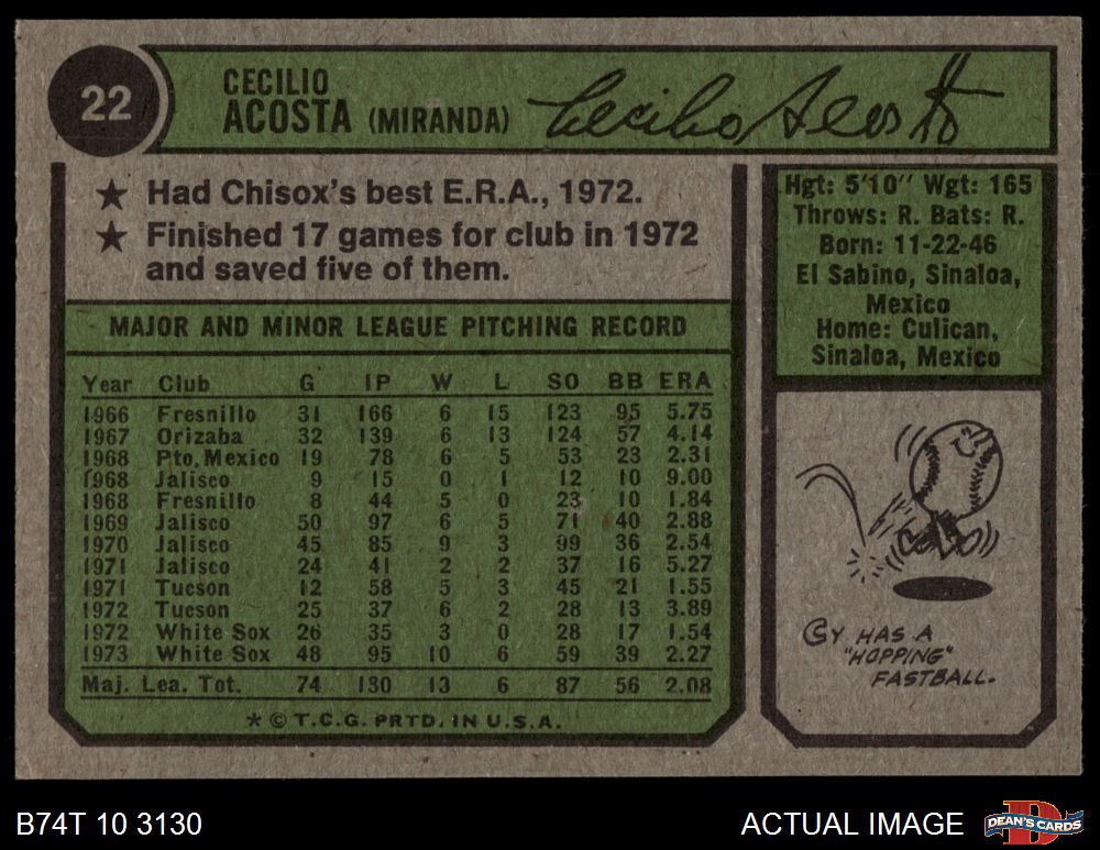 1974 Topps #22 Cy Acosta 5.5 - EX+