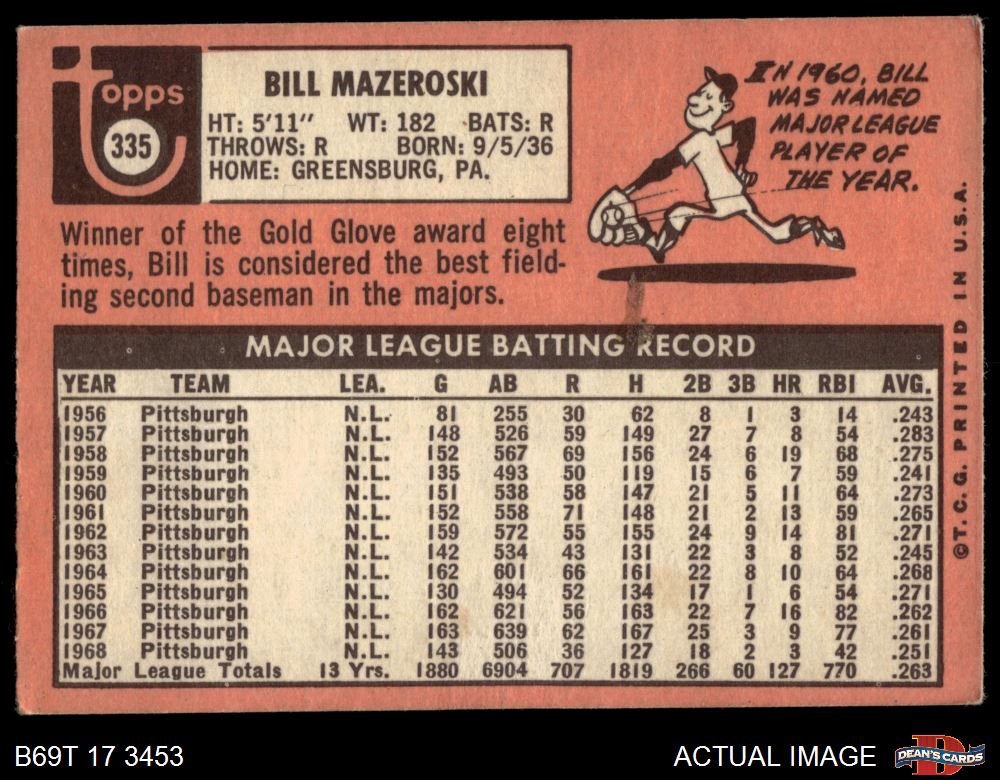 1969 Topps #335 Bill Mazeroski 3 - VG