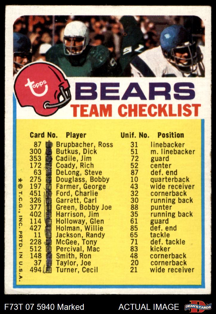 1973 Topps Checklist  Bears Front Thumbnail
