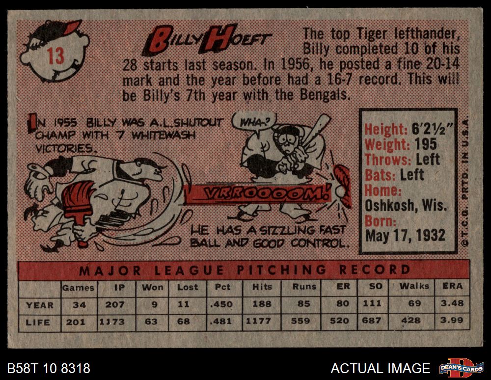 1958 Topps #13 YN Billy Hoeft
