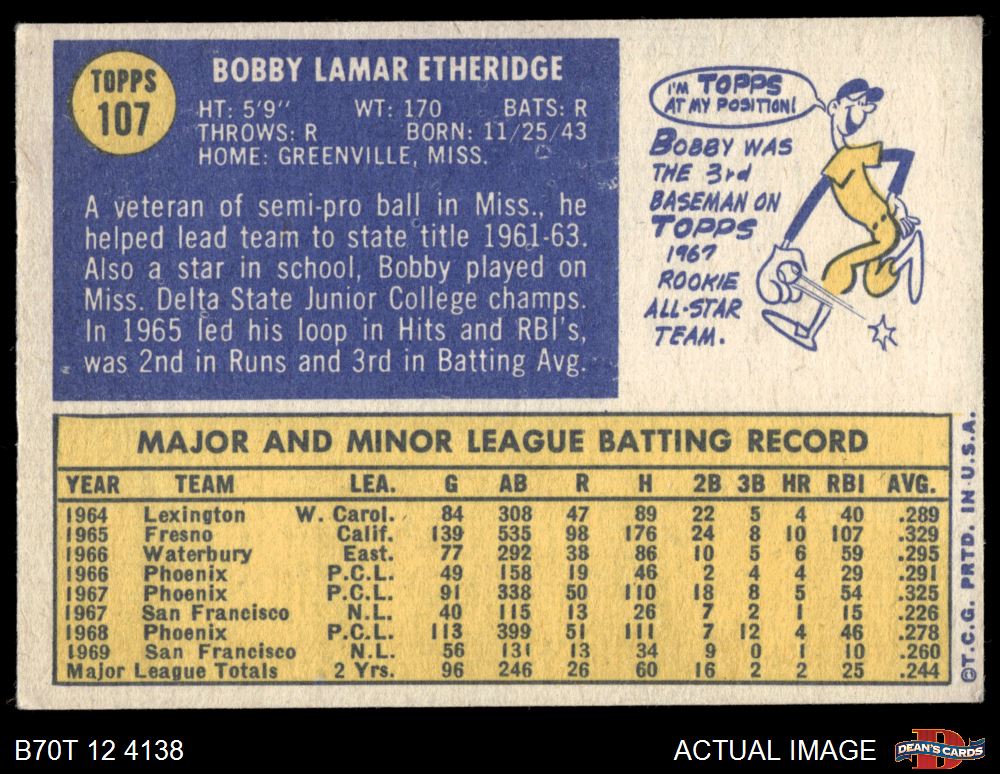 1970 Topps #107 Bobby Etheridge 5 - EX