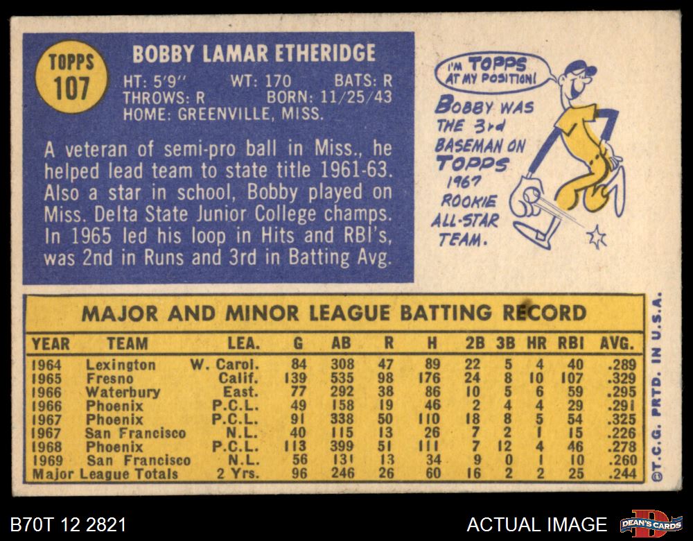 1970 Topps #107 Bobby Etheridge 6 - EX/MT