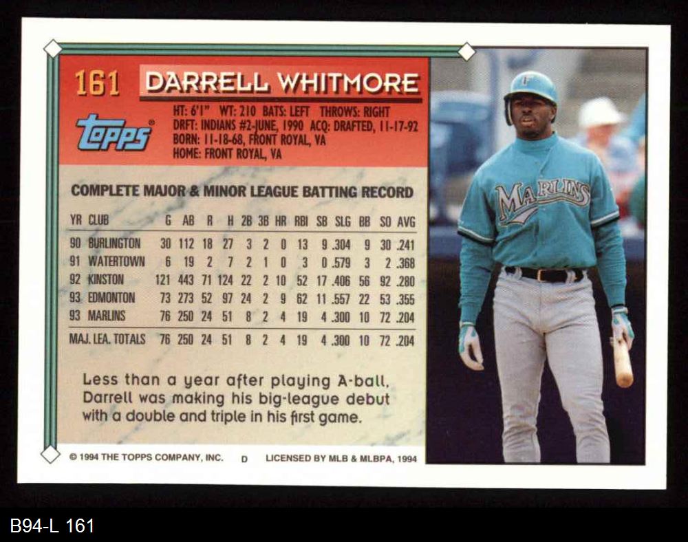 1994 Topps #161 Darrell Whitmore 8 - NM/MT