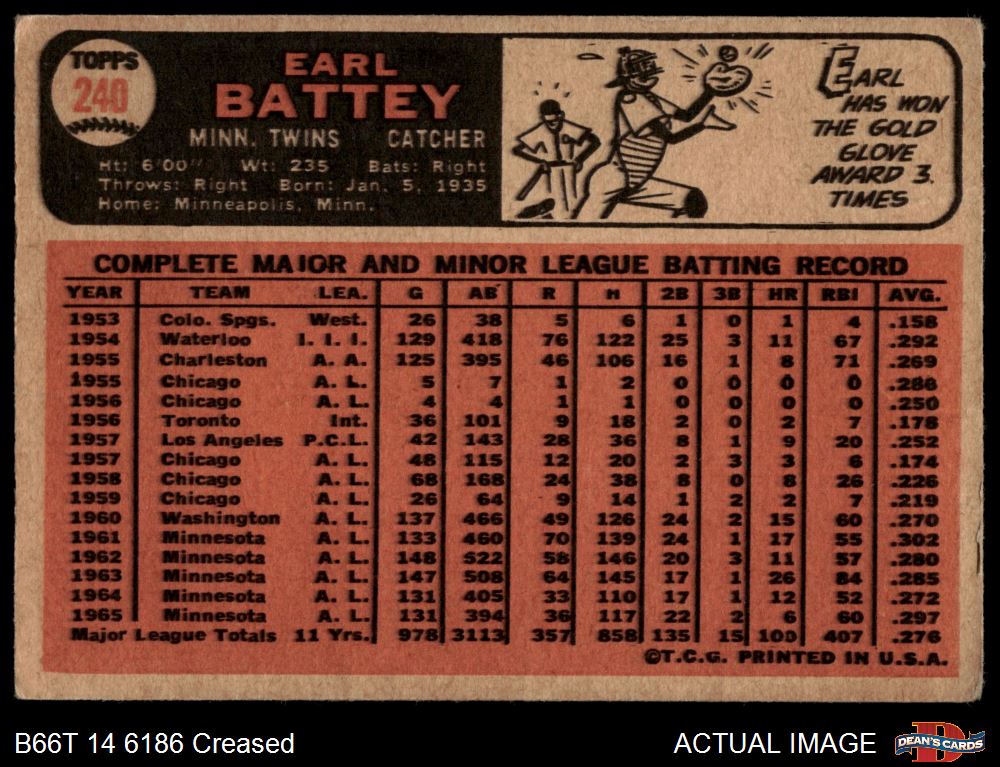1966 Topps #240 Earl Battey 1.5 - FAIR