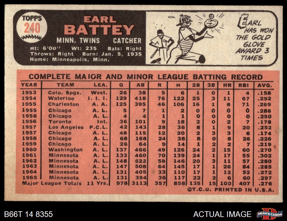 1966 Topps #240 Earl Battey 5 - EX
