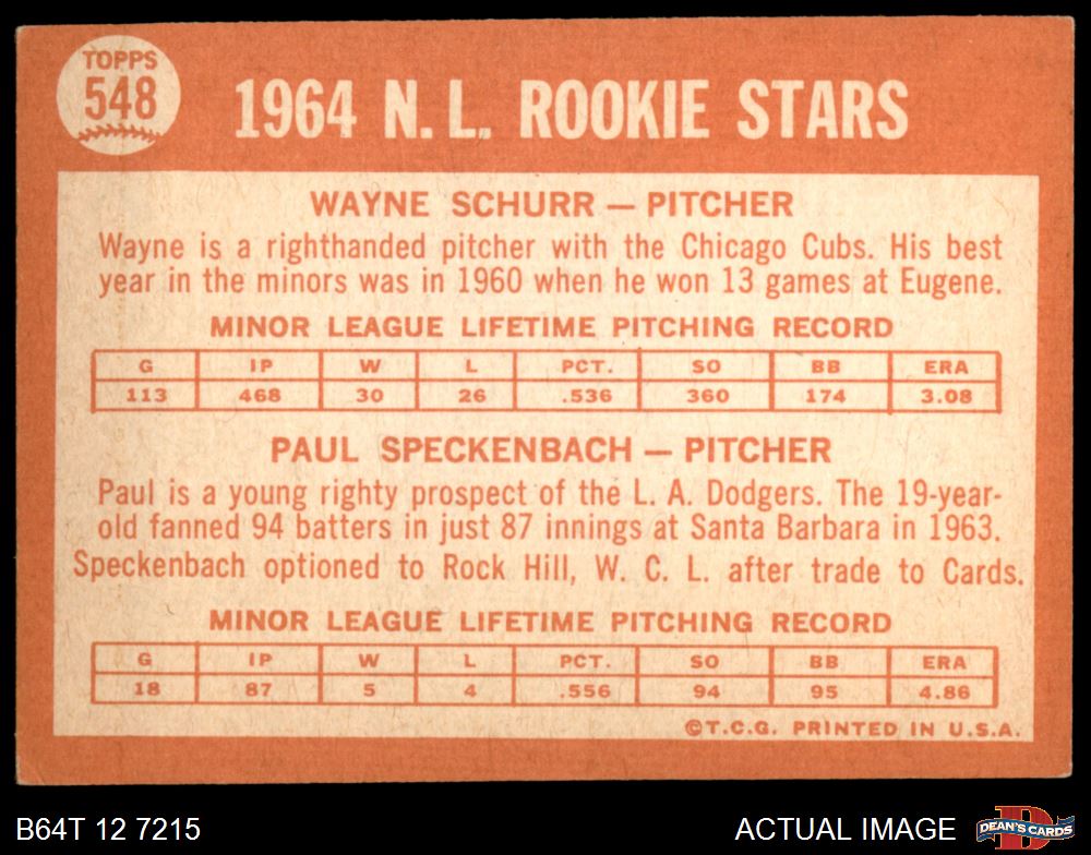 1964 Topps #548 - Wayne Schurr / Paul Speckenbach NL Rookies 3 - VG