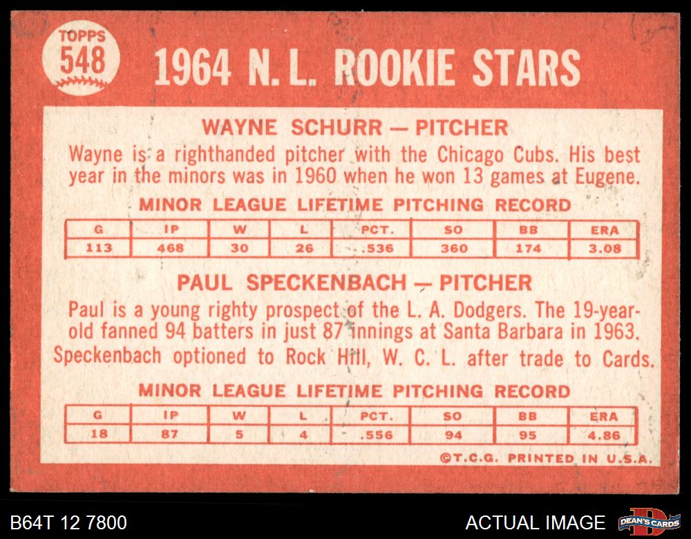 1964 Topps #548 - Wayne Schurr / Paul Speckenbach NL Rookies 3.5 - VG+