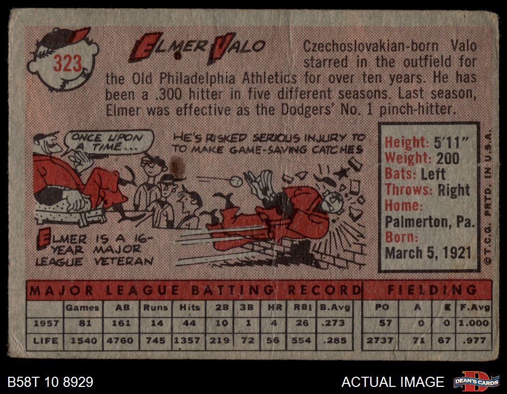1958 Topps #323 Elmer Valo 1 - POOR