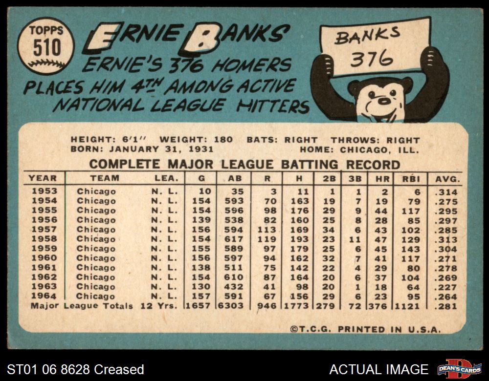 1965 Topps #510 Ernie Banks 3 - VG