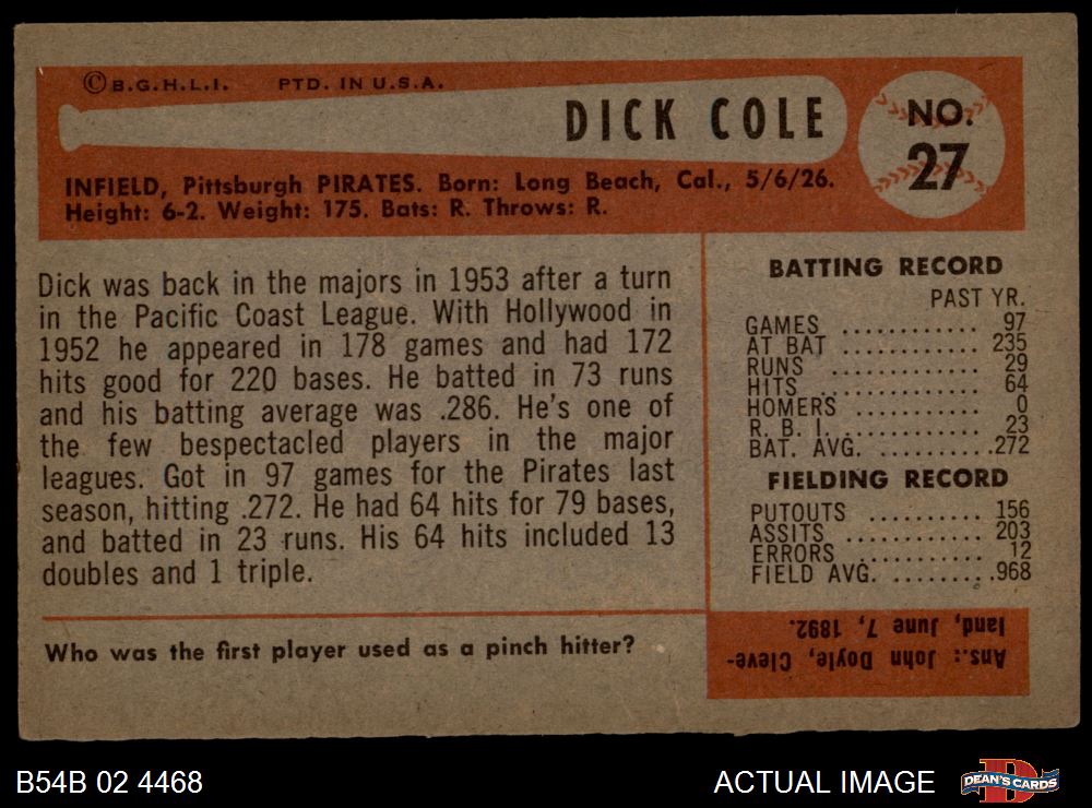 1954 Bowman #27 Dick Cole 4 - VG/EX