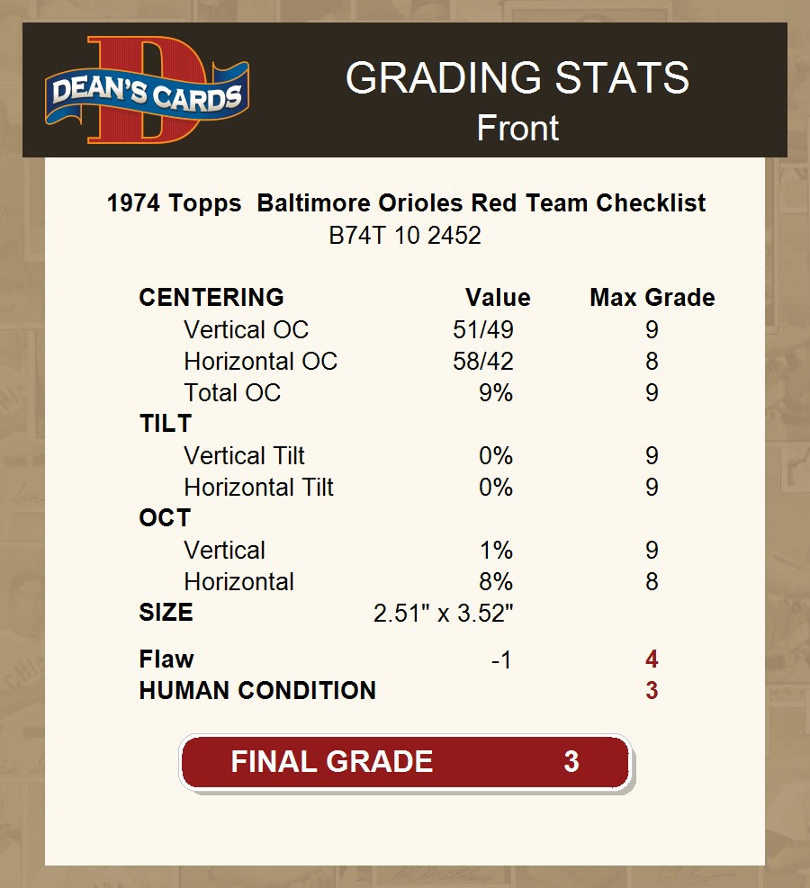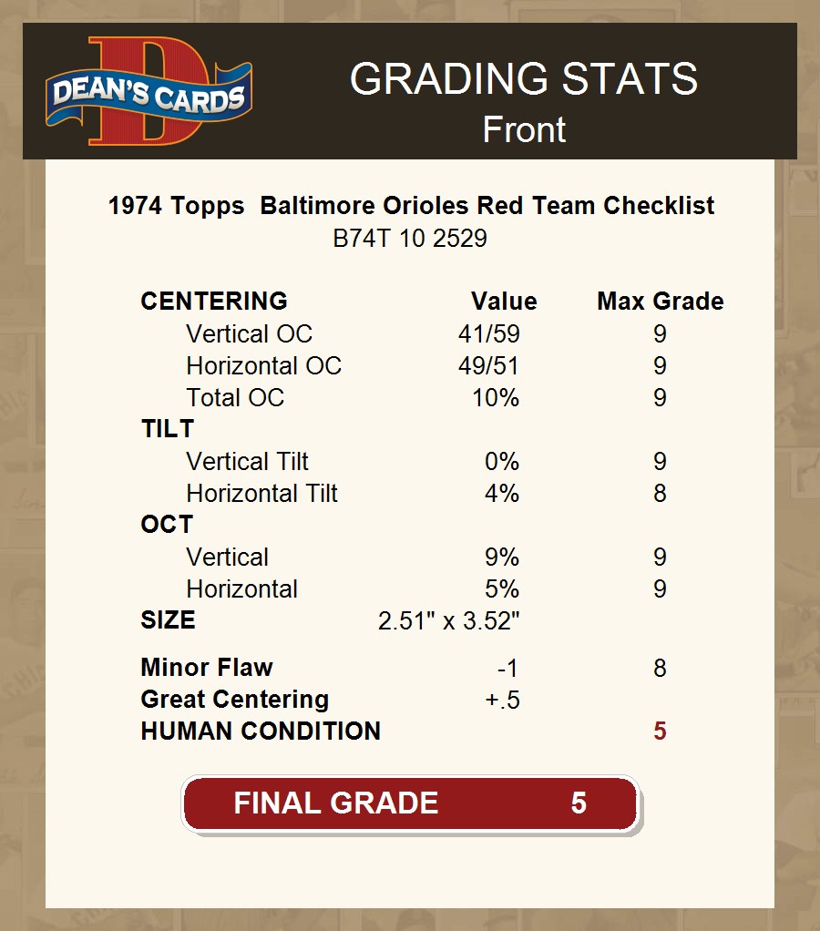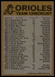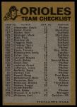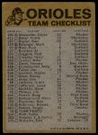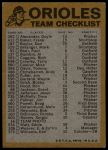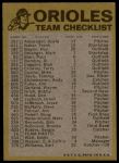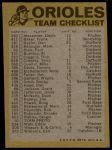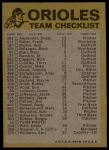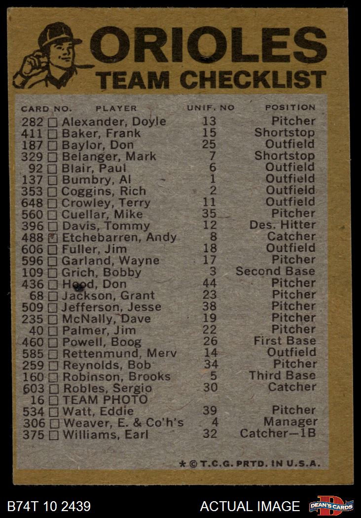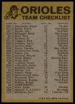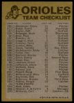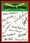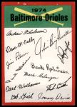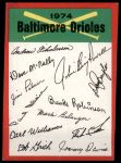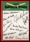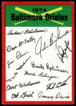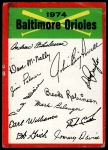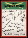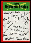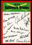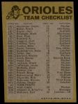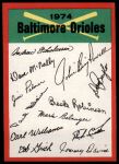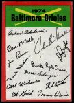1974 Topps Red Team Checklist Baltimore Orioles Red Team Checklist
