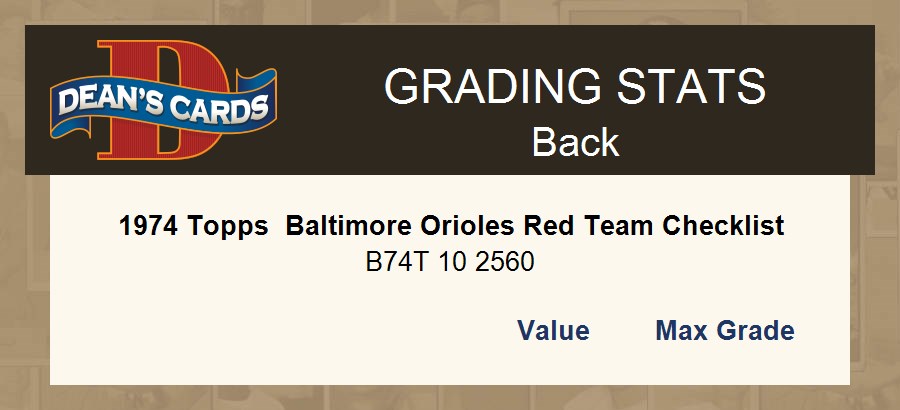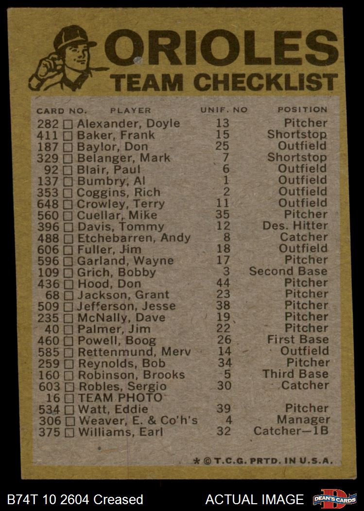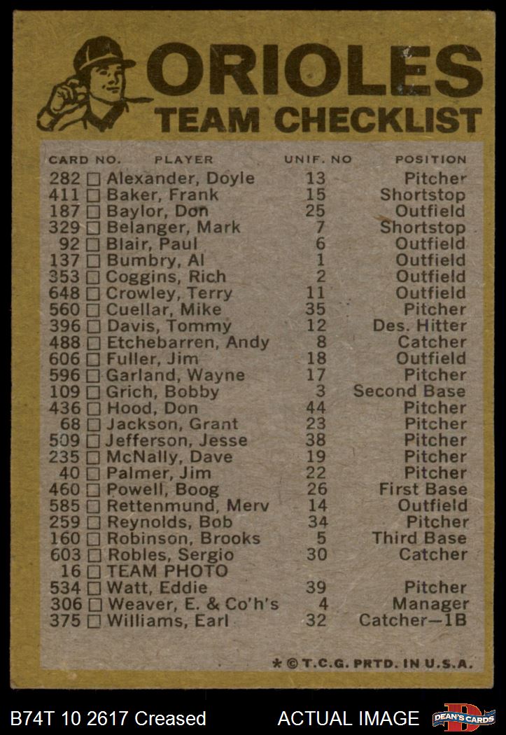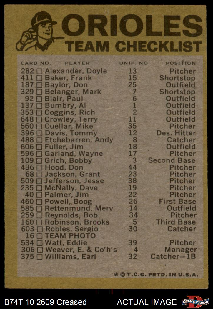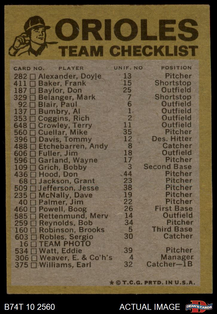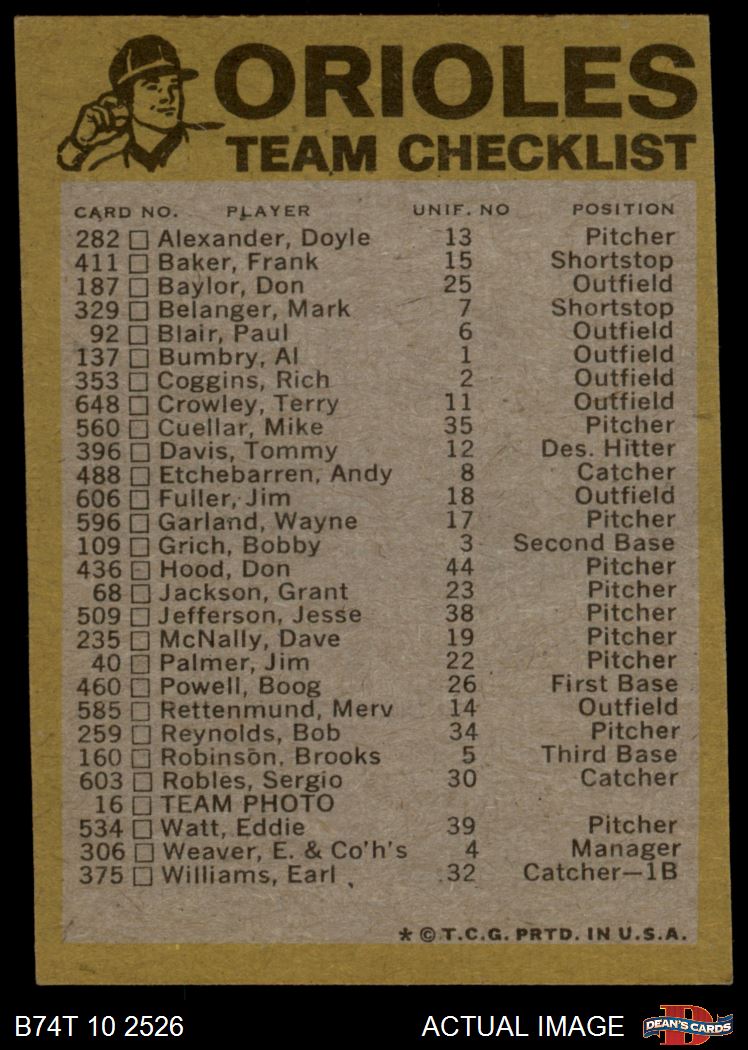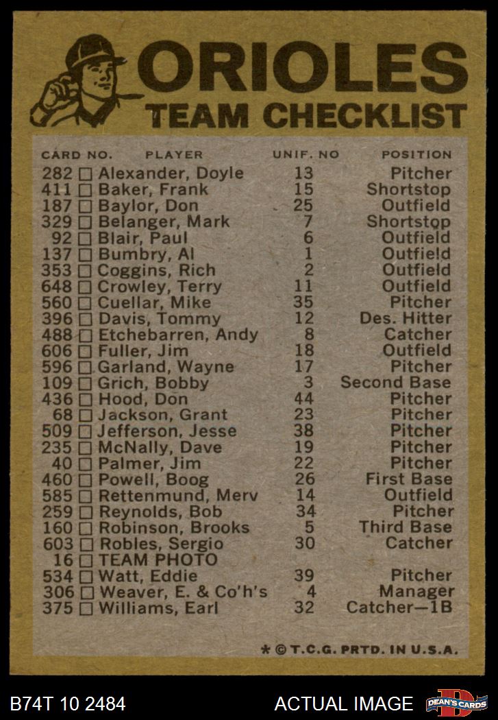 1974 Topps Baseball Cards (18,021 available)1974 Topps Red Team Checklist Orioles (39 available)