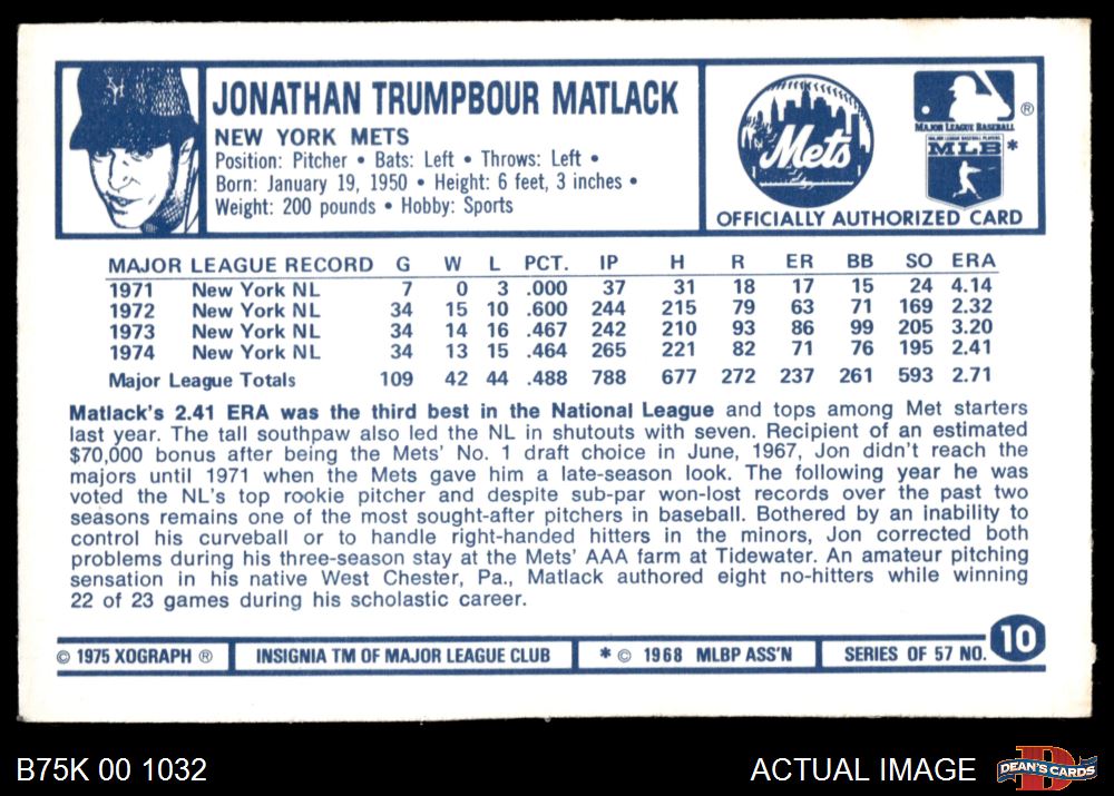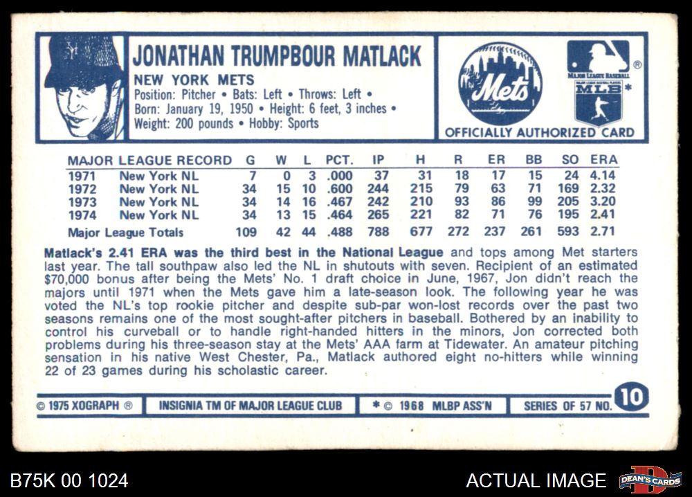 1975 Kellogg's #10 Jon Matlack 2 - GOOD