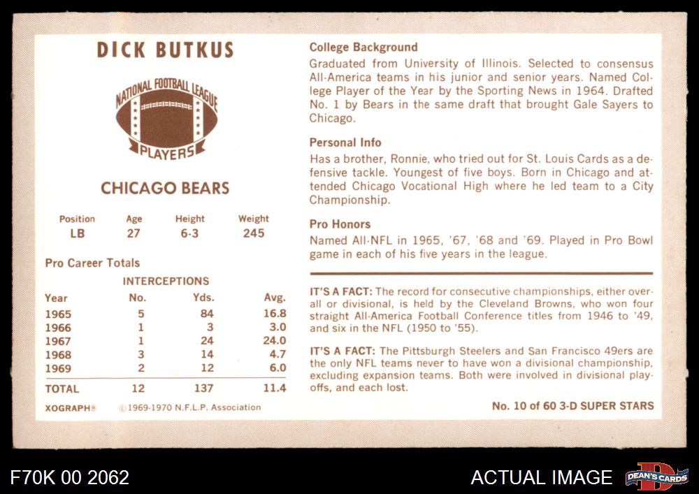 1970 Kellogg's #10 Dick Butkus 7 - NM