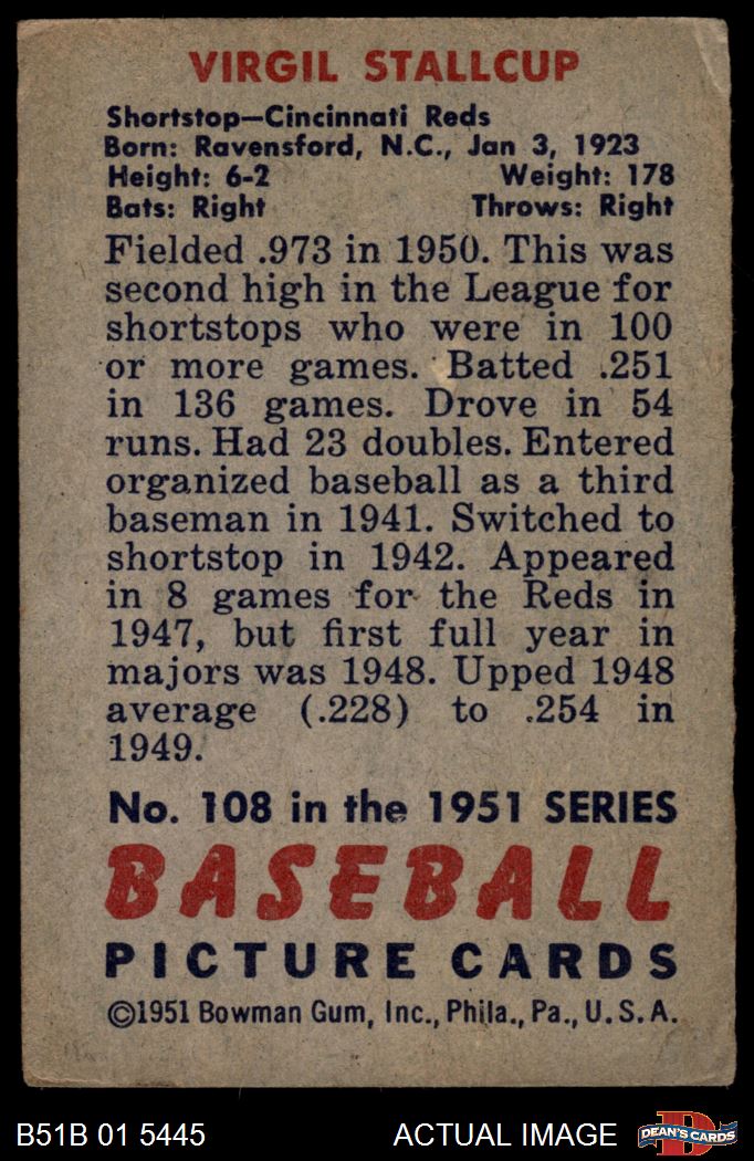 1951 Bowman #108 Virgil Stallcup