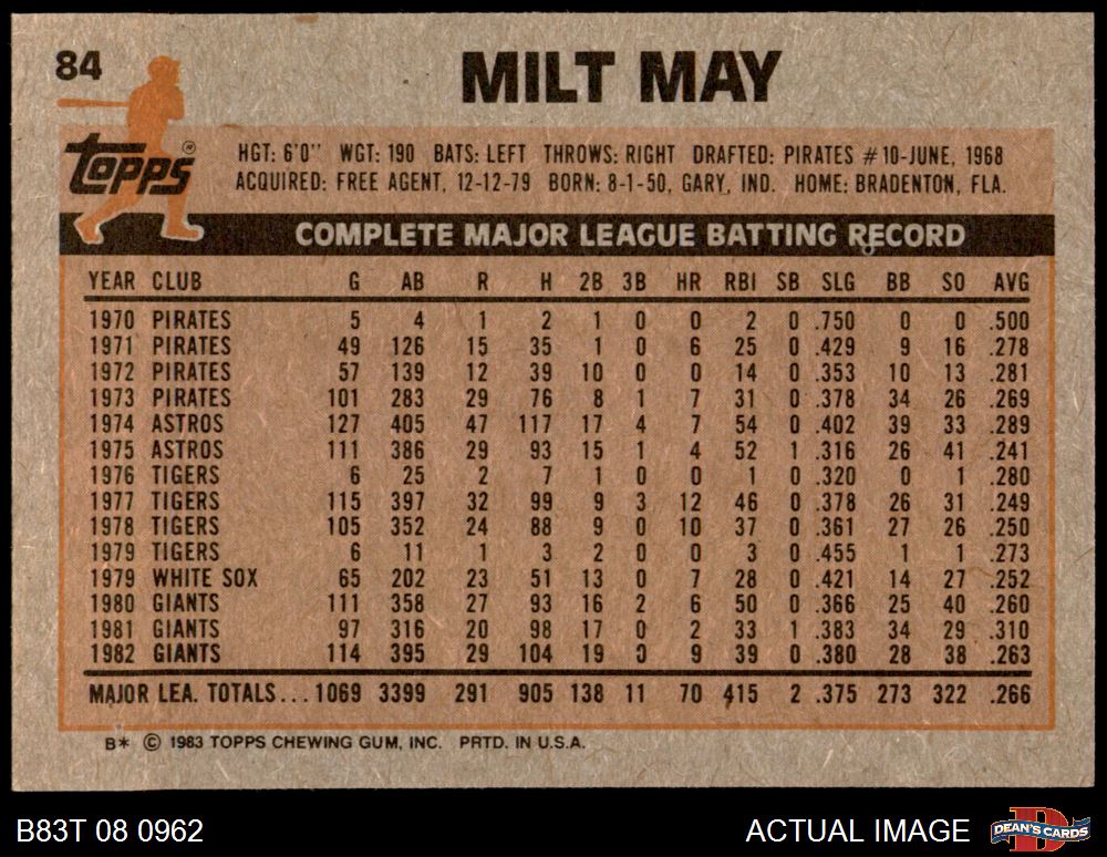 1983 Topps #84 Milt May