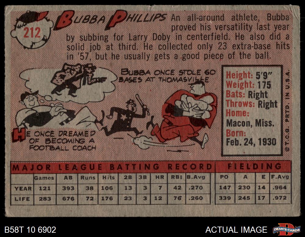 1958 Topps #212 Bubba Phillips 2 - GOOD