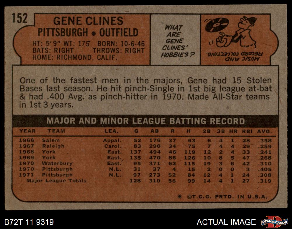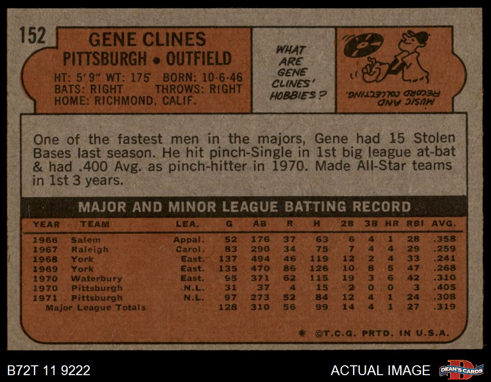 1972 Topps #152 Gene Clines