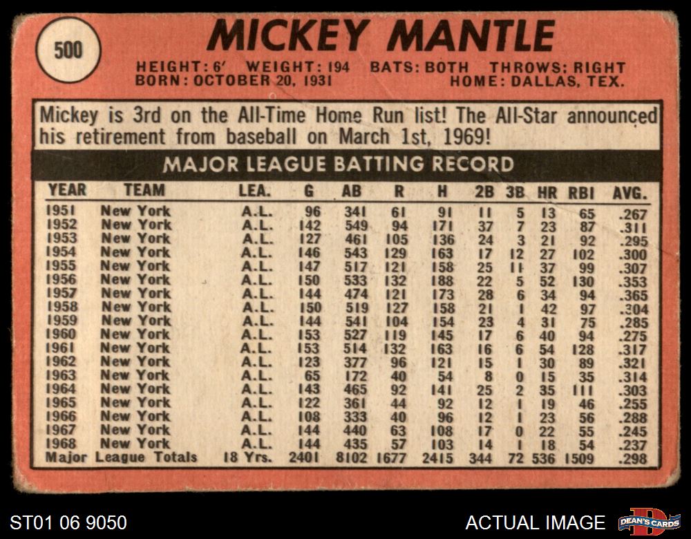 1969 Topps #500 YN Mickey Mantle AUTHENTIC