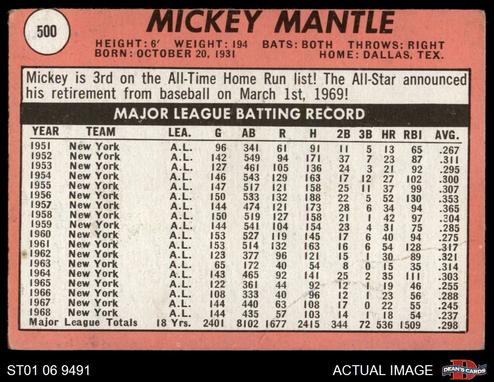 1969 Topps #500 YN Mickey Mantle 1.5 - FAIR