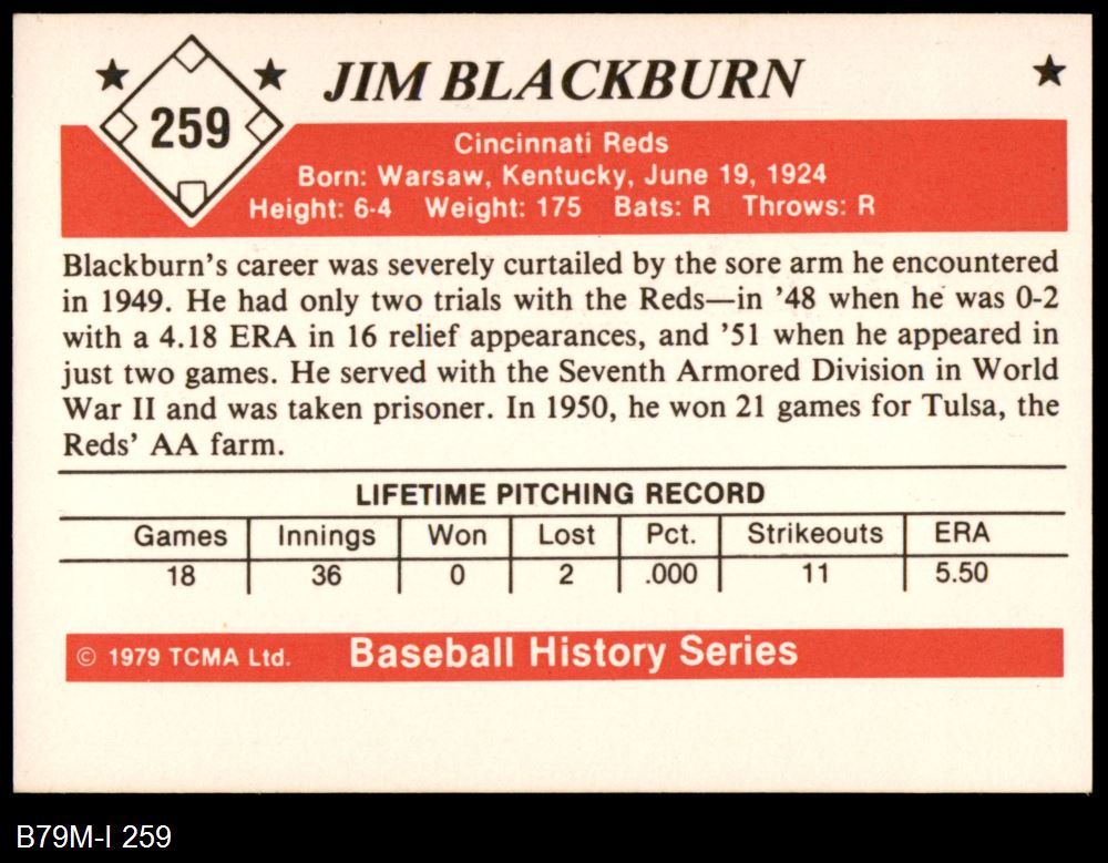 1979 TCMA The 1950's #259 Jim Blackburn