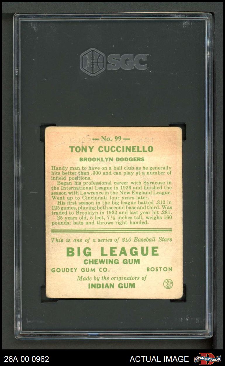 1933 Goudey #99 Tony Cuccinello SGC 1.5 - FAIR