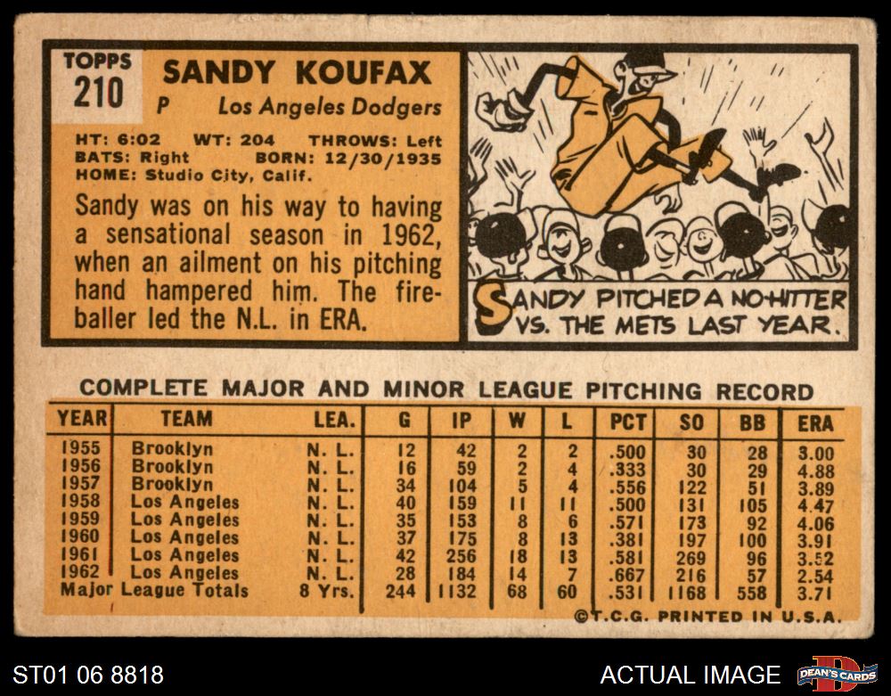 1963 Topps #210 Sandy Koufax 1.5 - FAIR