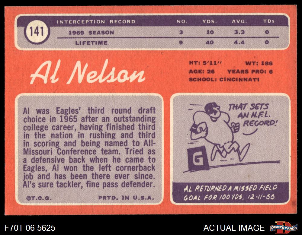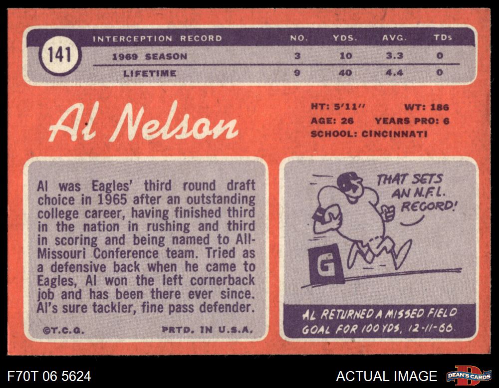 1970 Topps #141 Al Nelson 8 - NM/MT
