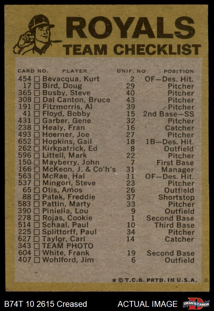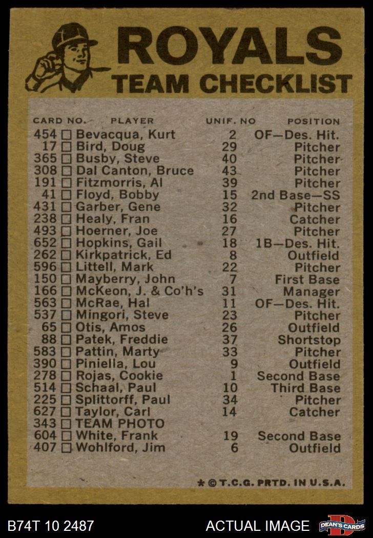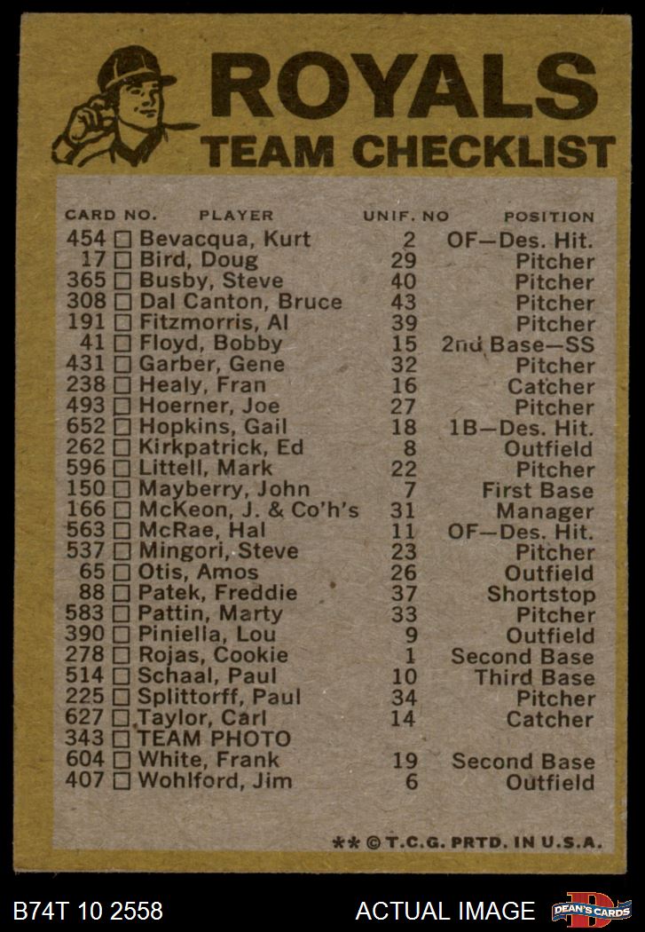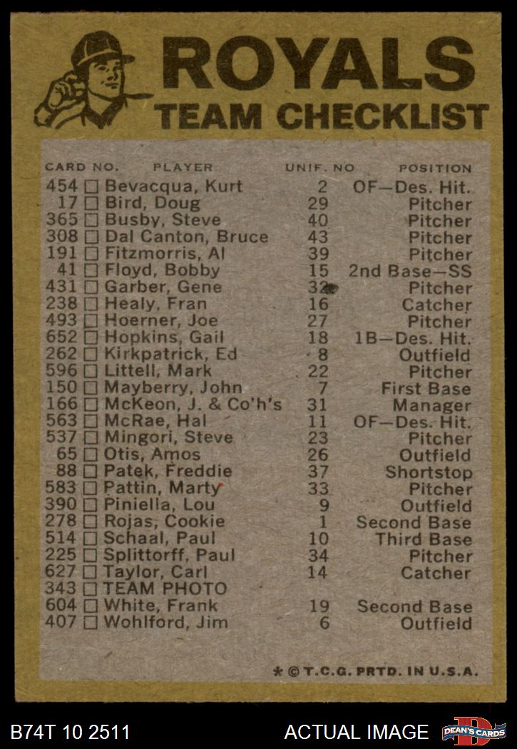 1974 Topps Baseball Cards (18,007 available)1974 Topps Red Team Checklist Royals (34 available)