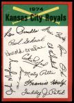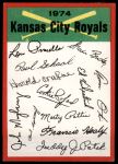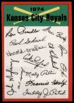 1974 Topps Red Team Checklist Kansas City Royals Red Team Checklist