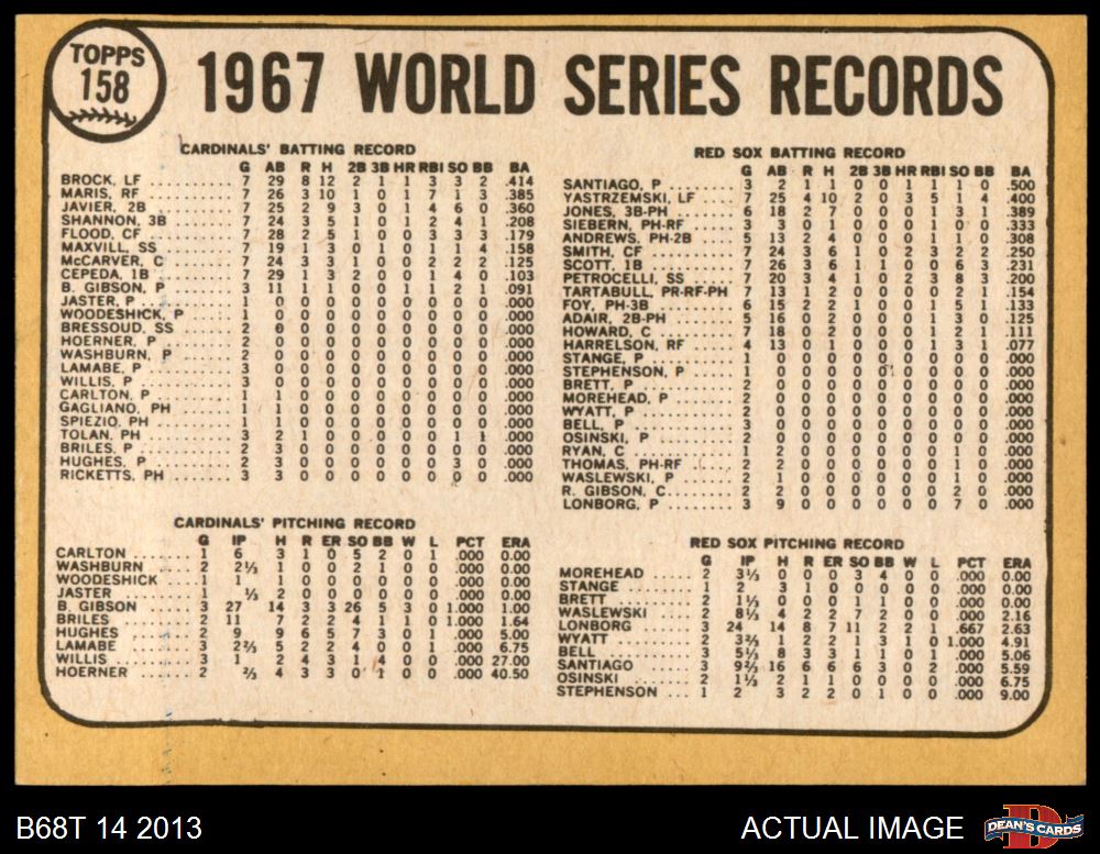 1968 Topps #158 - Tim McCarver / Dick Hughes 1967 World Series Summary - The Cardinals Celebrate! 7 - NM