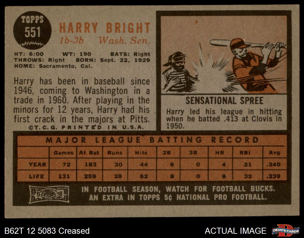1962 Topps #551 Harry Bright