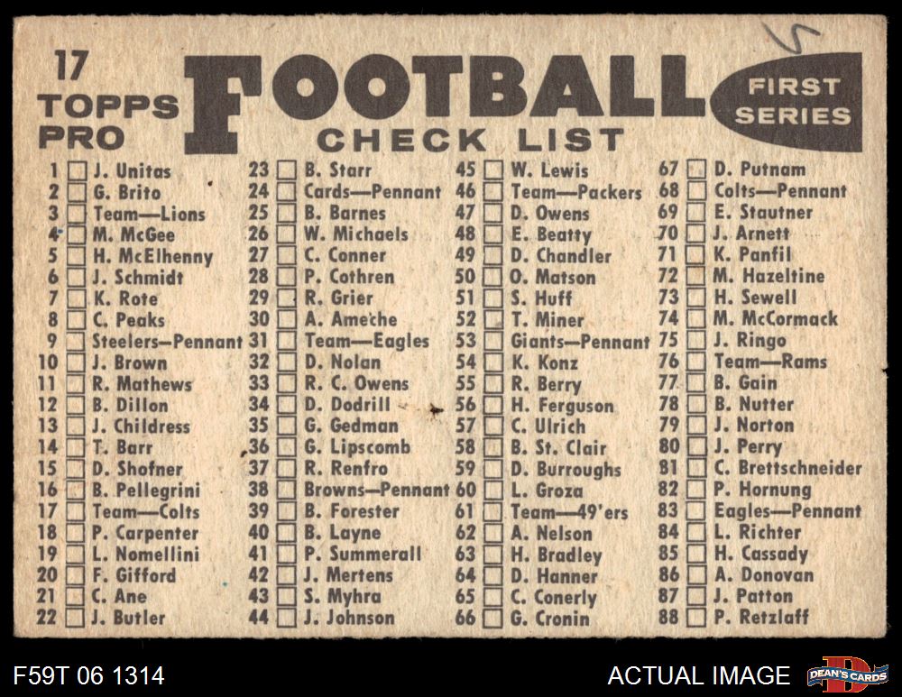 1959 Topps #17 Colts Team Checklist 2 - GOOD