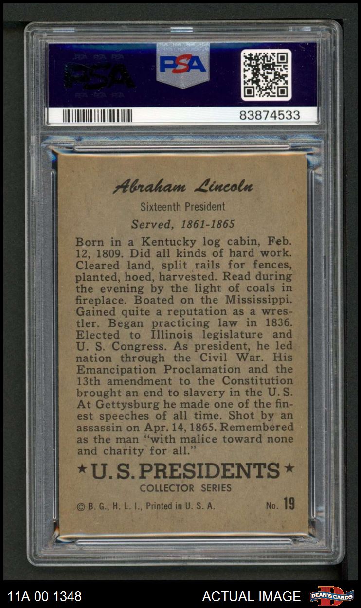 1952 Bowman U.S. Presidents #19 Abraham Lincoln PSA 4 - VG/EX
