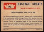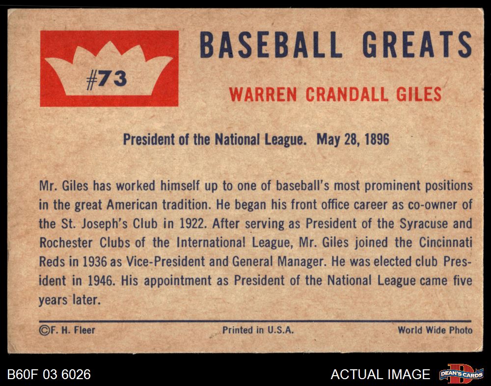 1960 Fleer #73 Warren Giles 2 - GOOD
