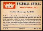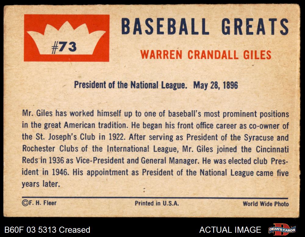 1960 Fleer #73 Warren Giles Front Thumbnail
