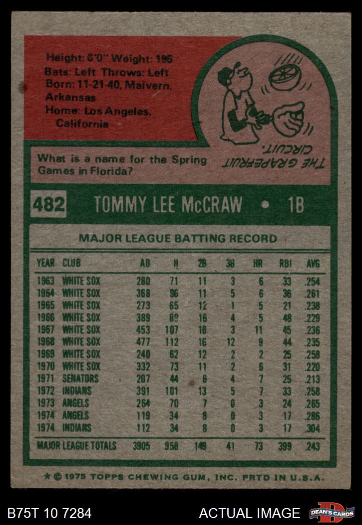 1975 Topps #482 Tom McCraw 3 - VG