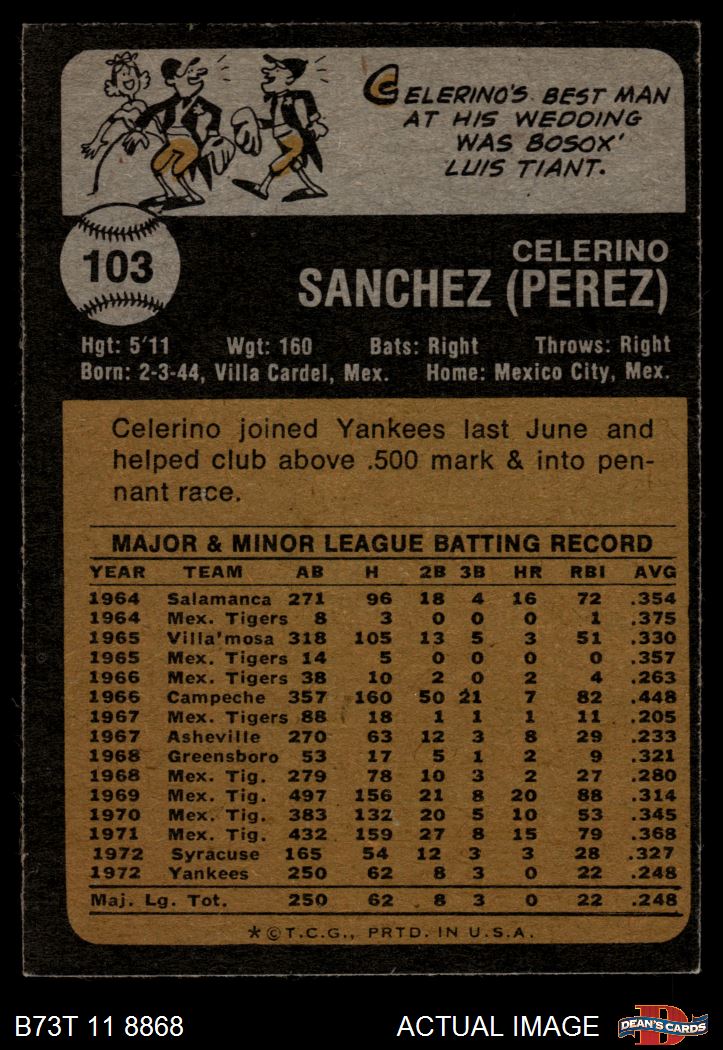 1973 Topps #103 Celerino Sanchez 4.5 - VG/EX+