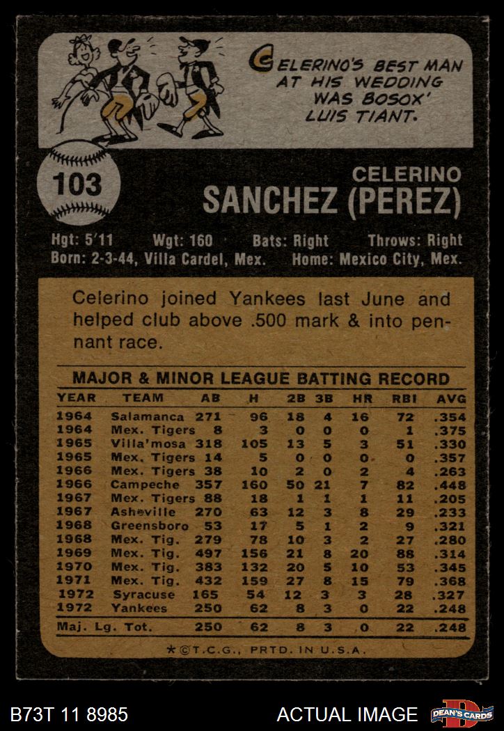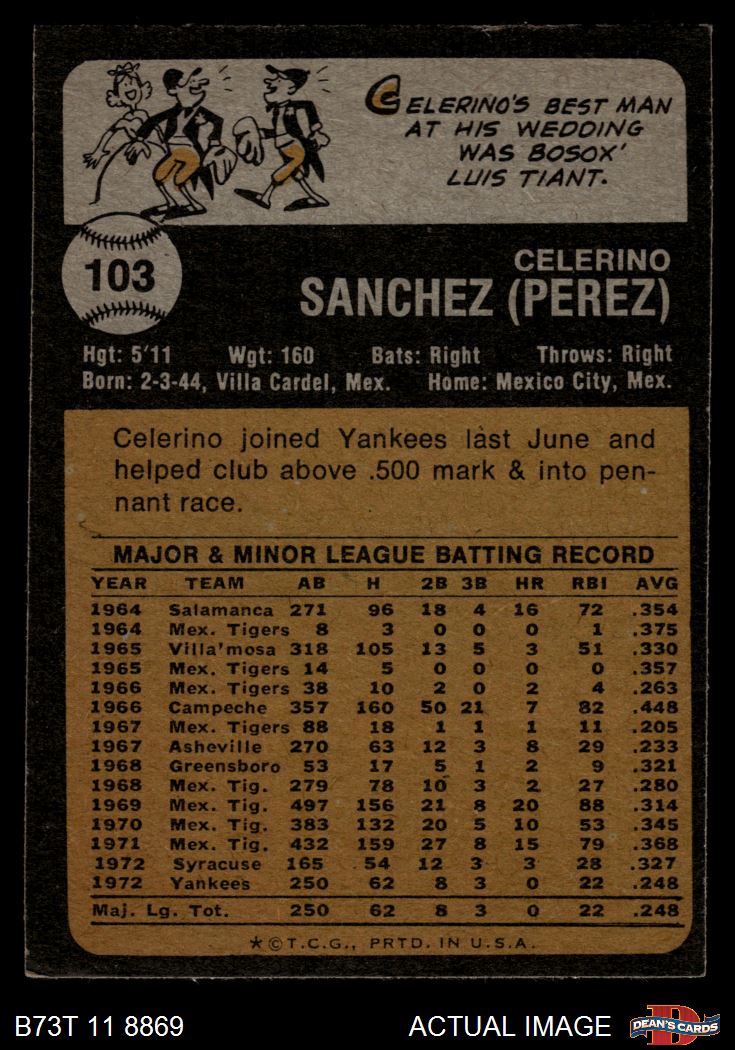 1973 Topps #103 Celerino Sanchez 5 - EX