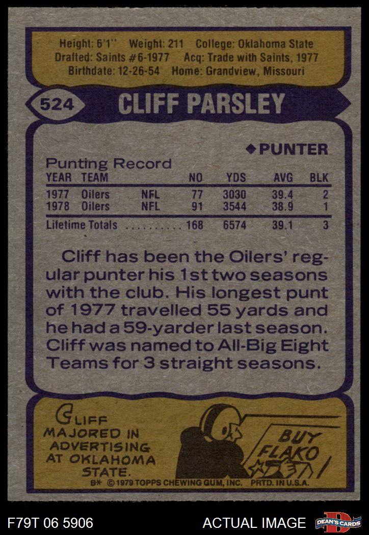 1979 Topps #524 Cliff Parsley