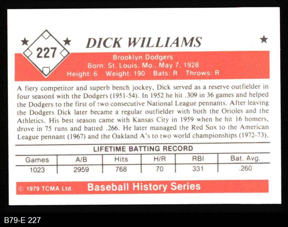 1979 TCMA The 1950's #227 Dick Williams 8 - NM/MT