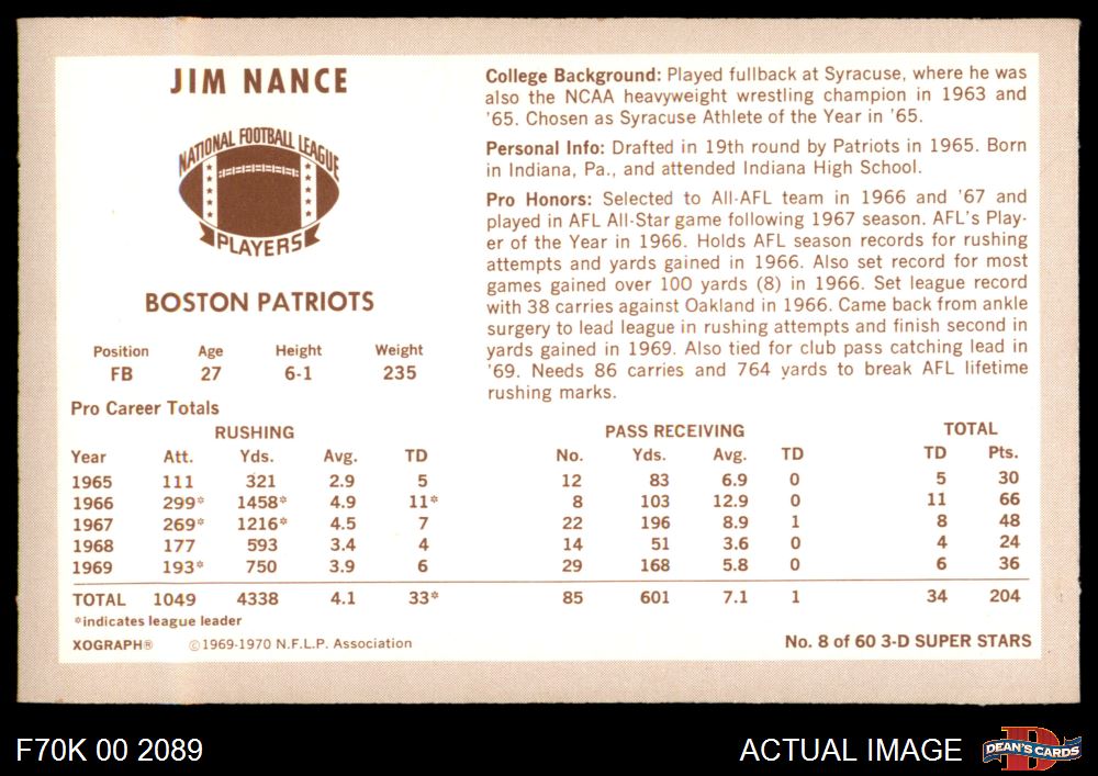 1970 Kellogg's #8 Jim Nance 7 - NM