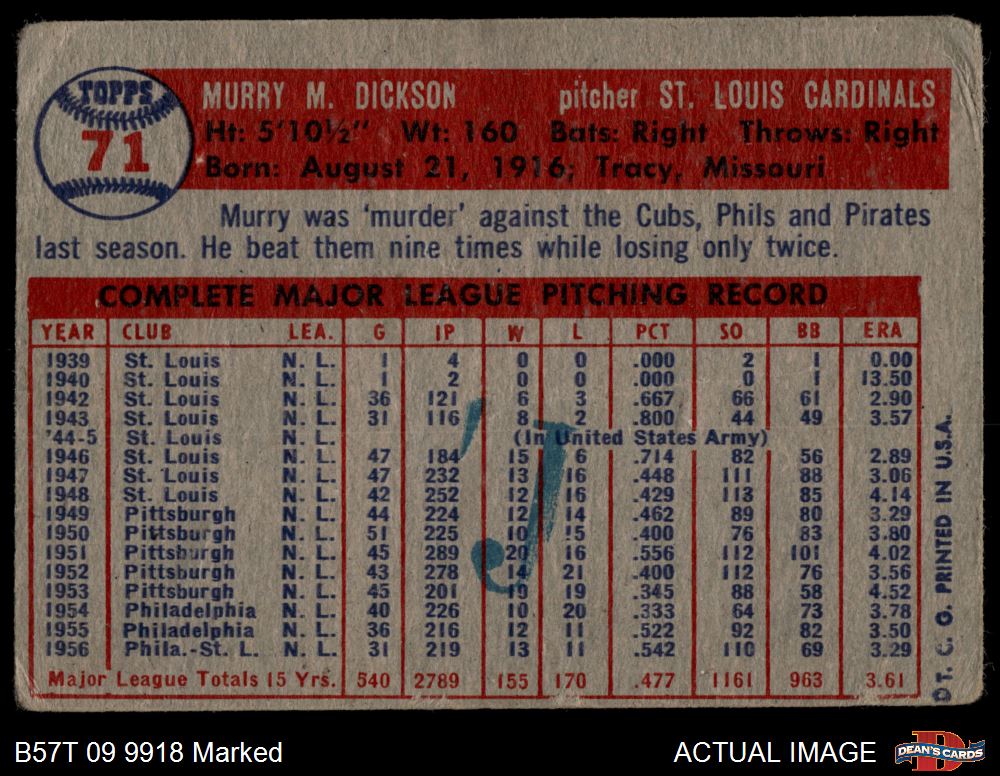 1957 Topps #71 Murry Dickson AUTHENTIC