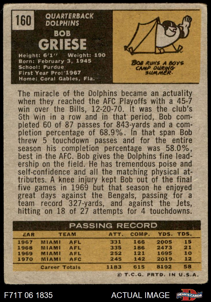 1971 Topps Football Cards (4,198 available)1971 Topps Dolphins (151 available)