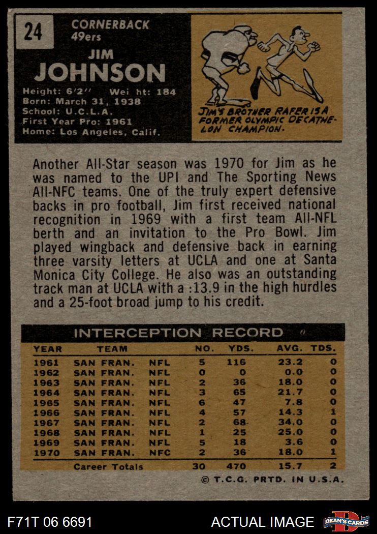 1971 Topps #24 Jimmy Johnson 3 - VG
