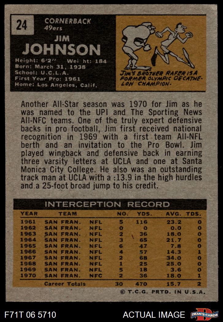 1971 Topps #24 Jimmy Johnson 5 - EX