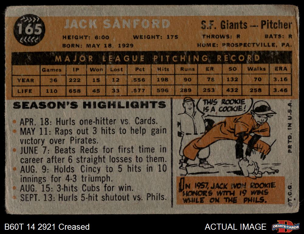 1960 Topps #165 Jack Sanford Front Thumbnail