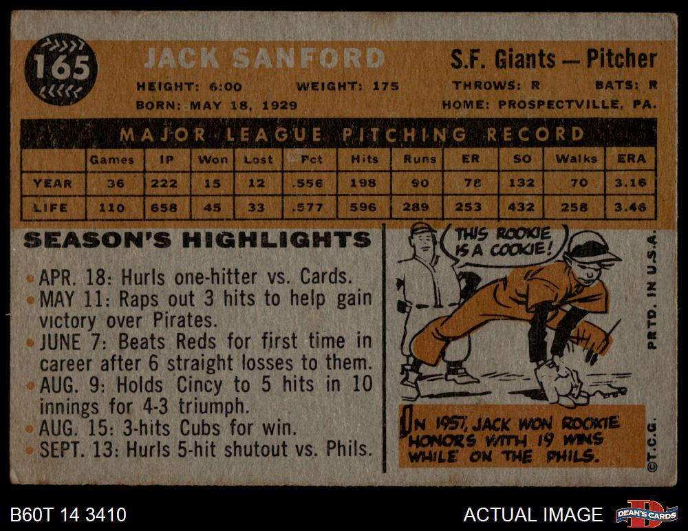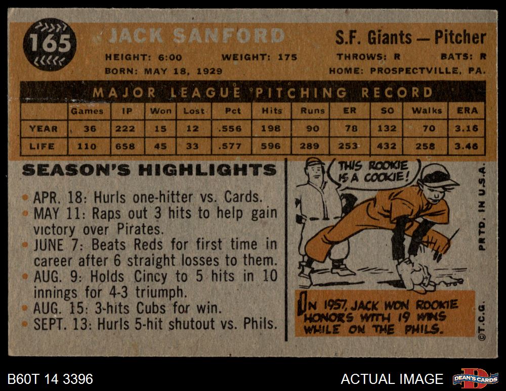 1960 Topps #165 Jack Sanford