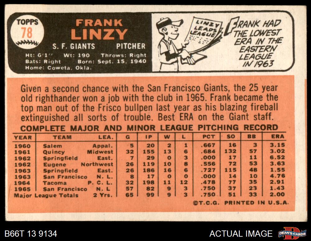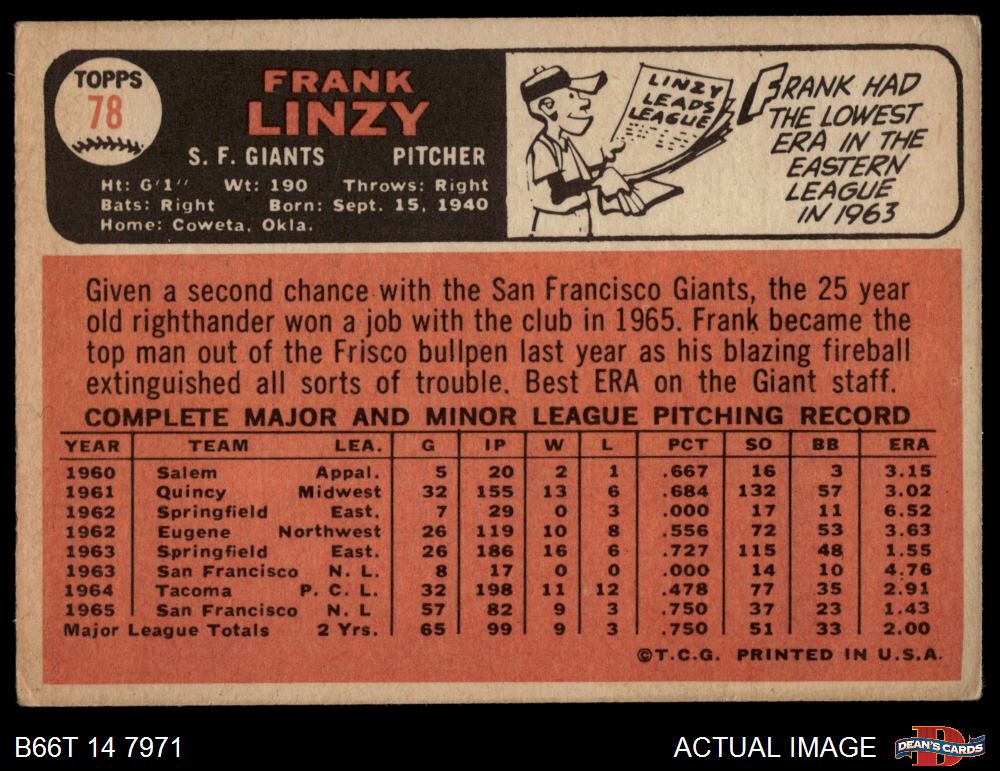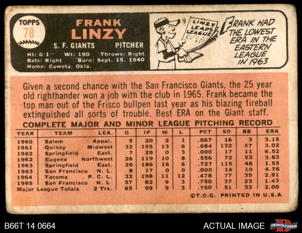 1966 Topps #78 Frank Linzy