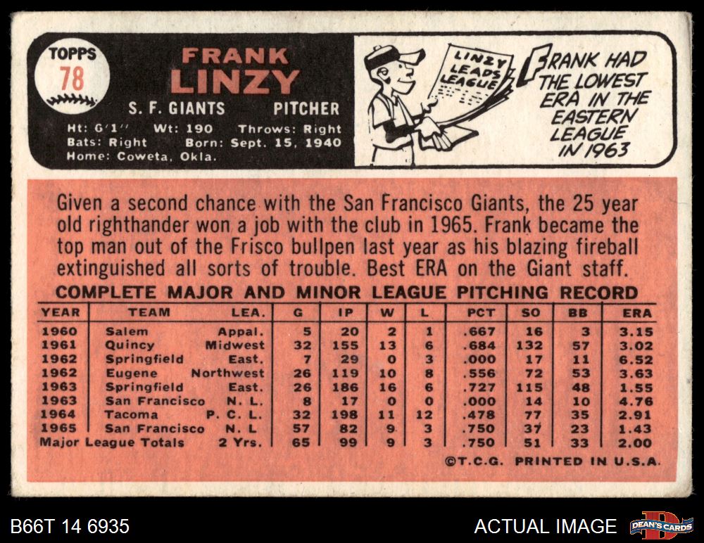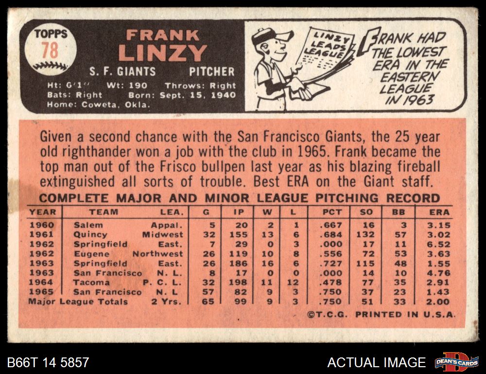 1966 Topps #78 Frank Linzy 2.5 - GD+